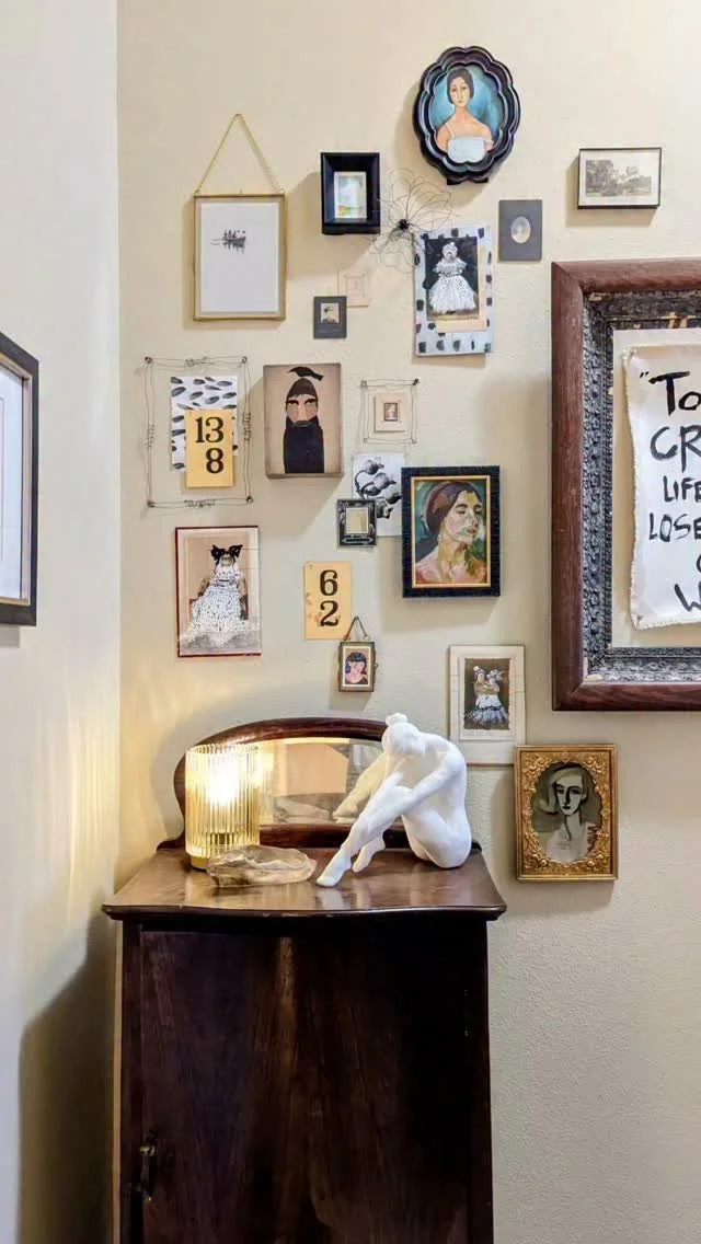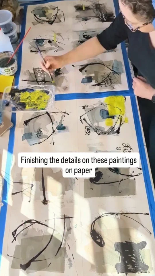 I’m a mixed media artist living in Lincoln, Nebraska. My favorite medium is acrylic paint, but I also love working with watercolor, ink, vintage paper, and anything else that might enhance a piece I’m creating. I paint both large and small original pieces and work with individuals, interior designers, and galleries.